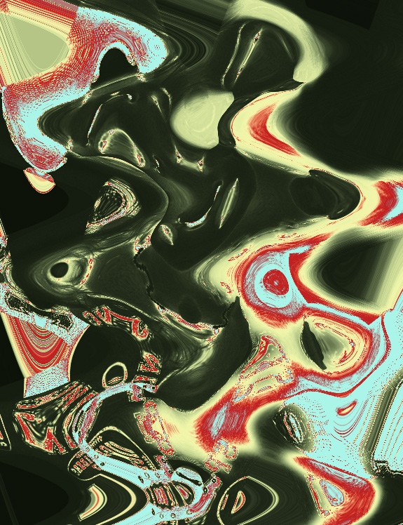 Allison Tanenhaus, uso de geometría y distorsión de la imagen a modo glitch, además de uso de colores vibrantes para la creación de la proyección gráfica.